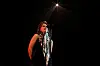 Under en enslig lyskaster i en ellers mørk teatersal fremførte Nils Bech to låter.