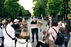 Midt i bildet ser vi Zhanar Sekerbayeva under en demonstrasjon organisert av den skeive og feministiske organisasjonen FEMINITA.