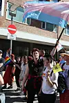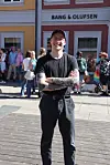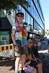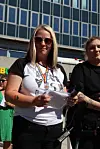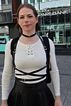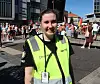 – Jeg ville gått i paraden selv, dersom jeg ikke var på jobb, sa vekter Henriette mens hun holdt et våkent øye med pridefolket og andre på Stortorvet. Den unge bergenseren har bodd i plankebyen i tre år, og opplever Fredrikstad som et godt sted å leve et skeivt liv. – Jeg vil si at Fredrikstad er veldig flink til å åpne armene sine for homofile og bifile og transer og alle sammen.