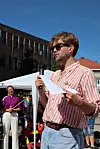 De som hadde ordet fra scenen etter paraden, adresserte naturlig nok skytingen i Oslo.