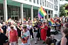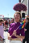 Nyvigslet biskop i Borg, Kari Mangrud Alsvåg gikk sammen med kirkens representanter i prideparaden i Fredrikstad.