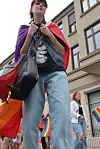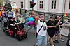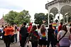 Et vakkert syn. Prideparaden rant over en av Haldens mange bruer med regnbuflaggene hevet. I fjor stilte omkring 500 mennesker i paraden. Etter mye hets i den lokale avisa i år, var arrangørene spente på om folk som ville dukke opp og gå for skeives rettigheter. Den frykten ble gjort til skamme.