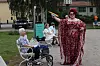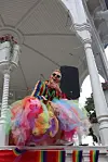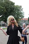 Artisten Henrik Wilhelm Wilhelmsen holdt minikonsert i Byparken da paraden kom inn.