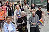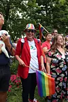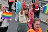 Det er valgår i år, og kommunepolitikere var godt representert under Pride på Grensen, blant annet med egen politikerdebatt tidligere i uka. Her Høyres store delegasjon før avgang i prideparaden lørdag.